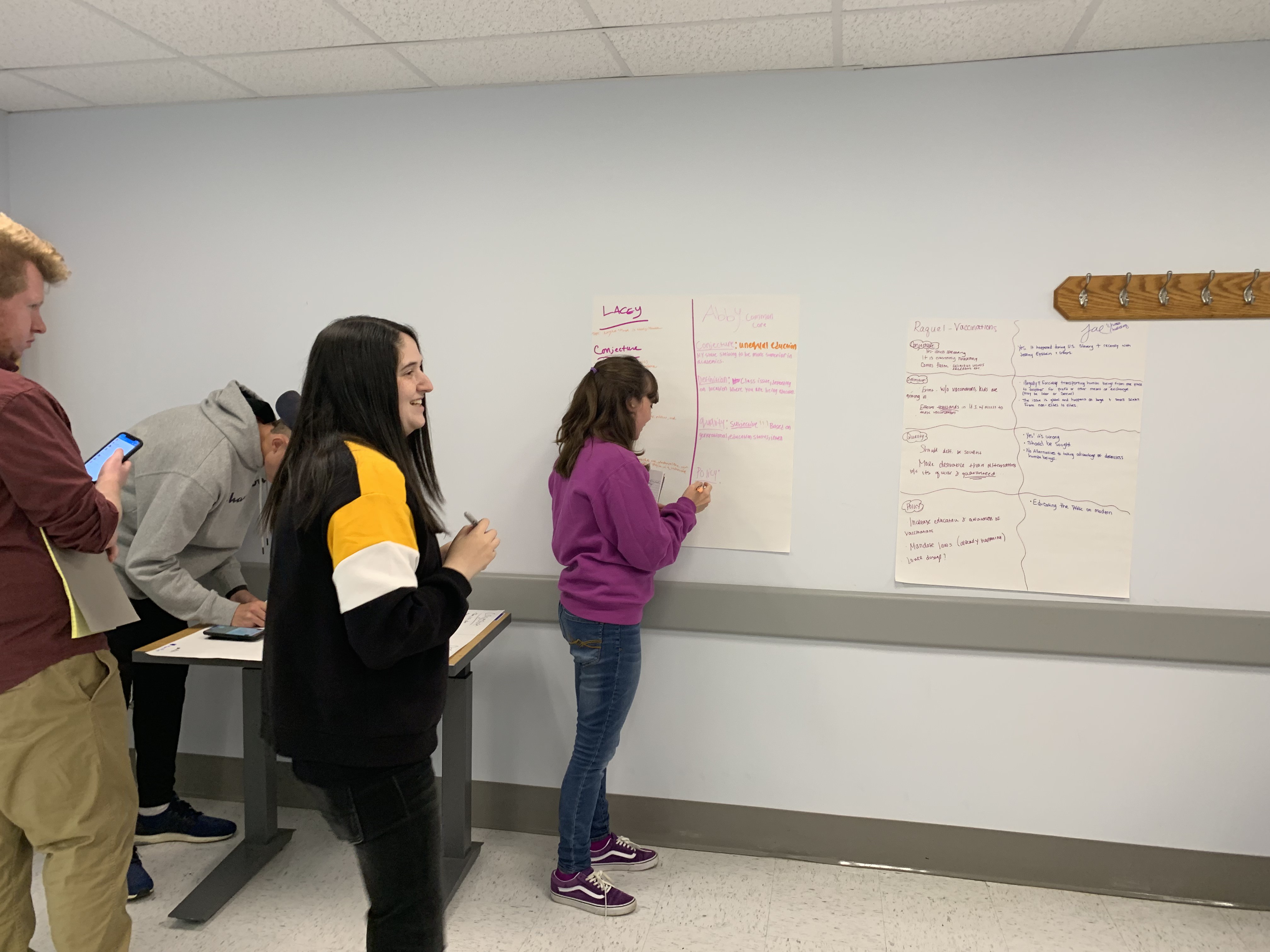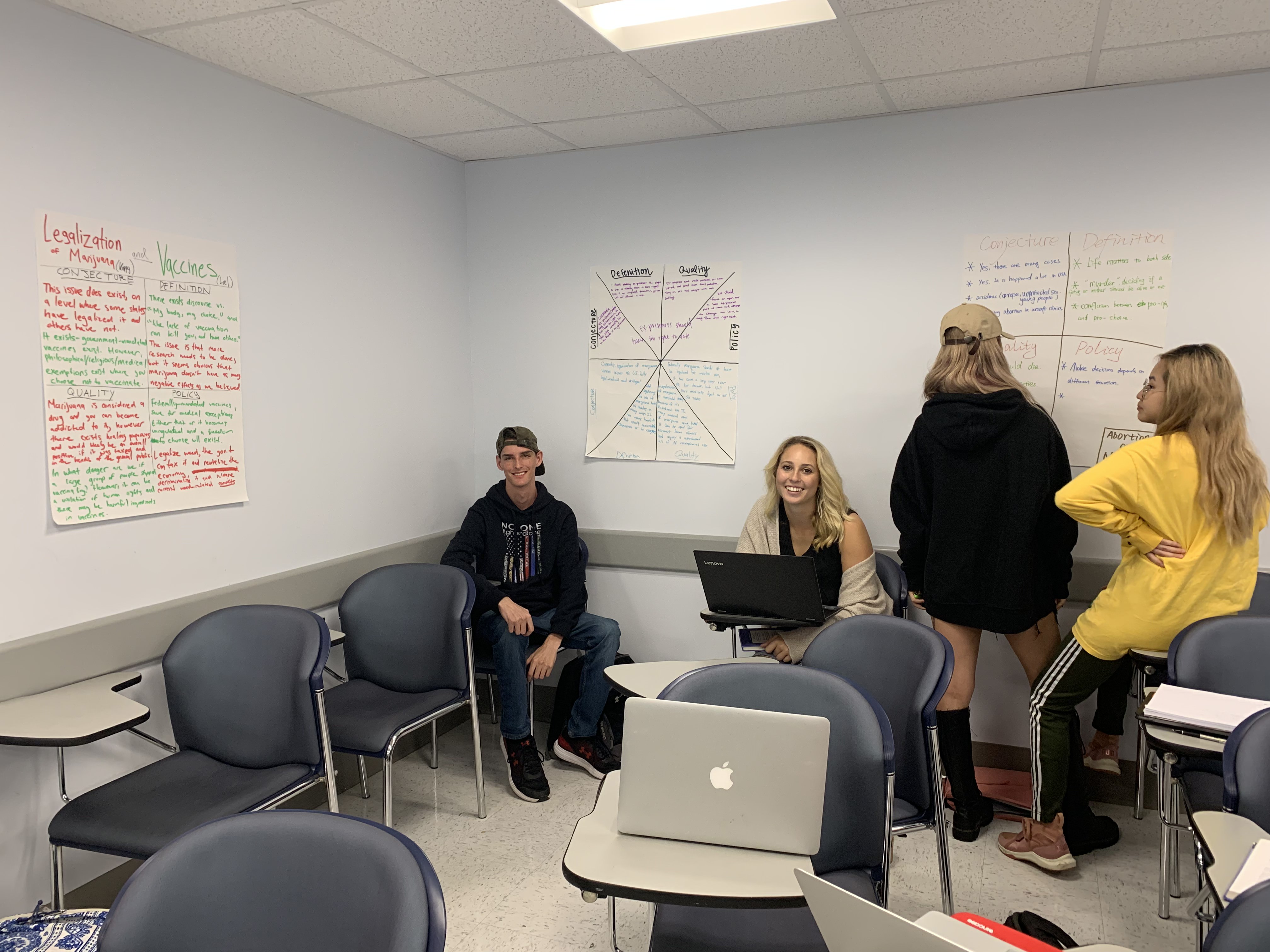 Working in pairs, and using the materials provided, go back to your second blog posts, re-reading them for attention to the questions of stasis. Take turns doing the following: Divide your sheet of paper into four parts: conjecture, definition, quality, and policy. Ask yourselves the questions associated with each point of stasis and write your answers to the corresponding parts.